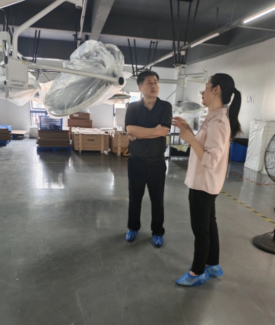 合作伙伴參觀了各個(gè)生產(chǎn)車間,同時(shí)與兆豐光電創(chuàng)始人吳向陽先生,針對(duì)打造模擬手術(shù)室展廳進(jìn)行了思想碰撞。